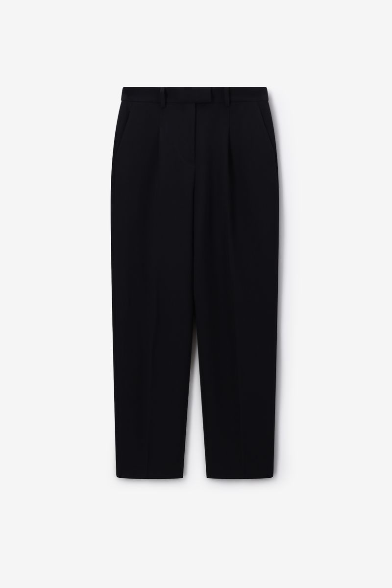 Verder heeft de broek een tapered fit en valt het tot de enkels. De broek heeft een hoge taille, een knoop-en ritssluiting, twee steekzakken aan de voorzijde en imitatiezakken aan de achterzijde.