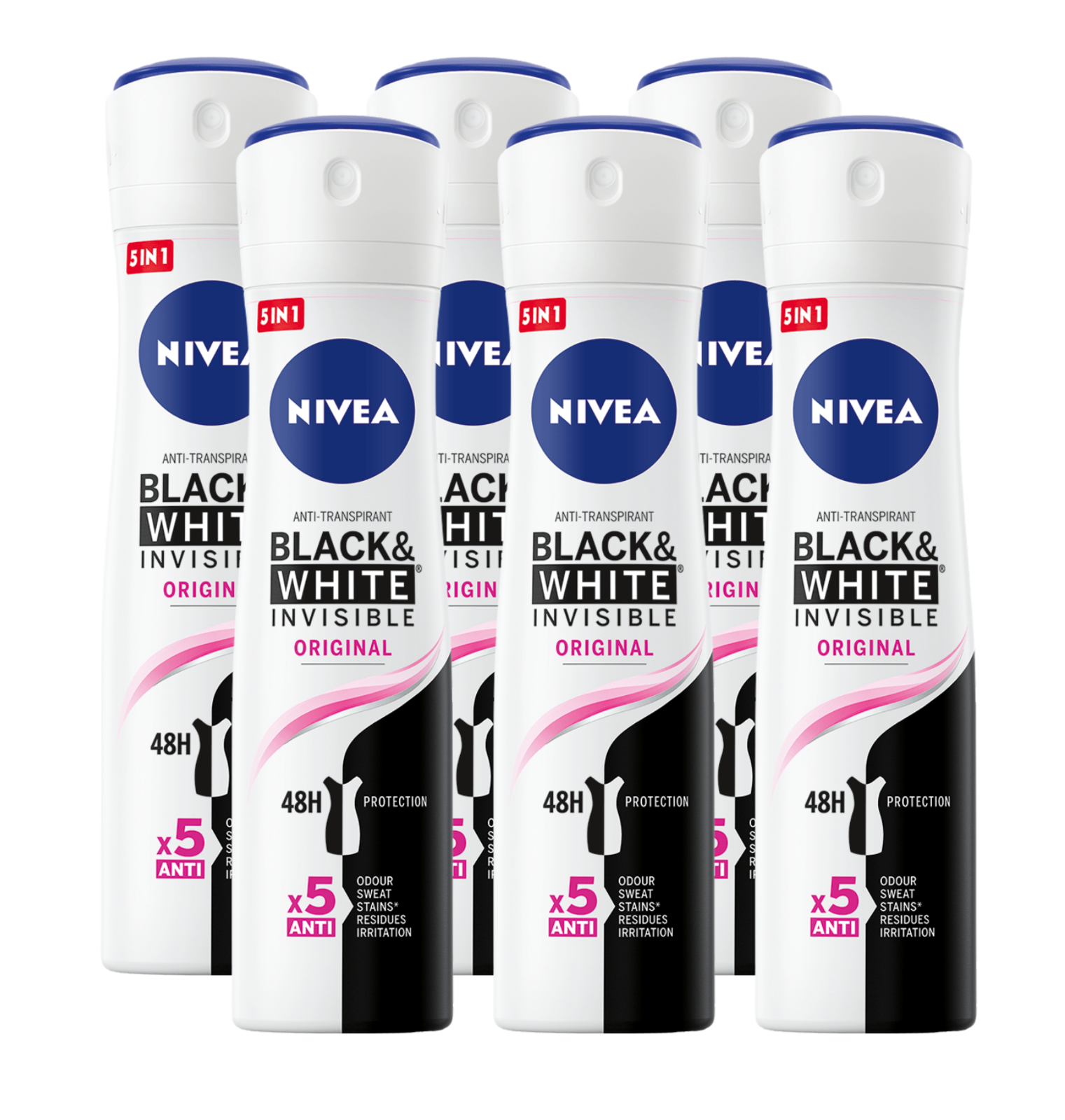 Maar dat niet alleen. Nivea Black & White Invisible Original Deodorant Spray (150ml) beschermt uw zwarte kleding tegen witte strepen en vermindert gele vlekken op uw witte kleding.