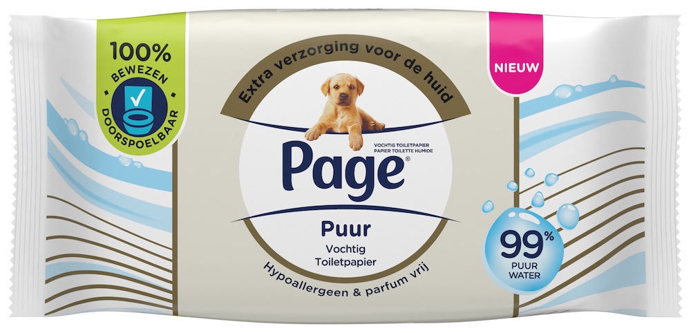 Page puur vochtig toiletpapier is speciaal ontwikkeld om extra verzorging voor de huid te bieden en bevat 99% puur water.