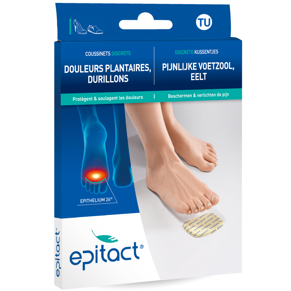 Doordat er dankzij slijtage druk en wrijving kan ontstaan, gaat de huid in verdediging en maakt eelt aan. Epitact Discrete Voetzoolkussentjes zijn speciaal ontwikkeld voor de pijnverlichting van de voetzolen en eeltknobbels.
