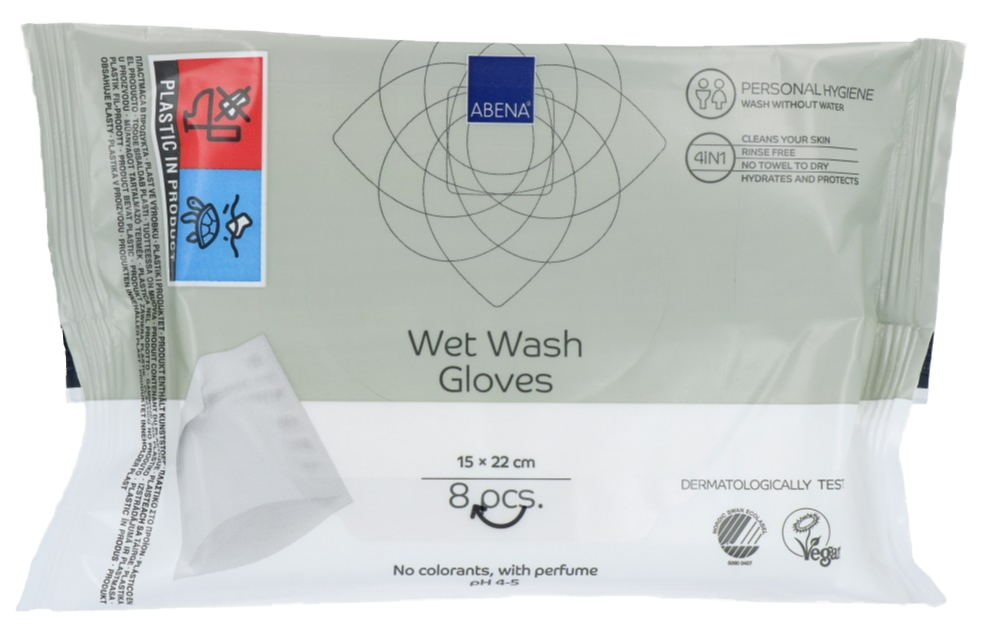 Abena Vochtige Washand Geparfumeerd (8st) zijn handig voor het reinigen en verzorgen van het hele lichaam zonder gebruik van water en zeep, is er een mild reinigingsproduct beschikbaar met een pH-huidneutrale formule die de huid verzorgt en hydrateert.