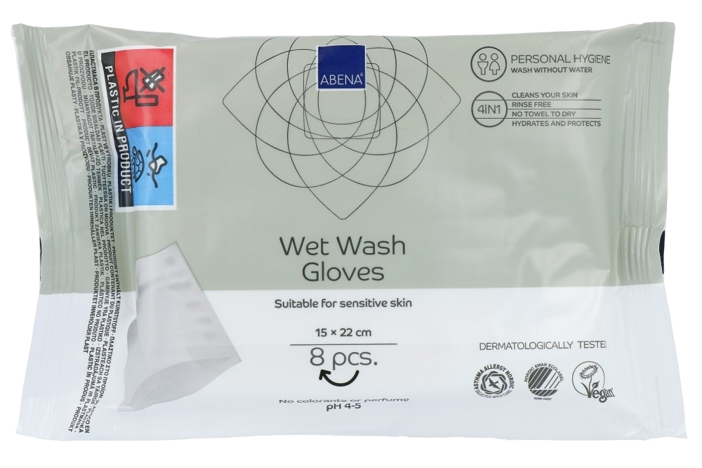Abena Vochtige Washand Ongeparfumeerd zijn handig voor het reinigen en verzorgen van het hele lichaam zonder gebruik van water en zeep, is er een mild reinigingsproduct beschikbaar met een pH-huidneutrale formule die de huid verzorgt en hydrateert.