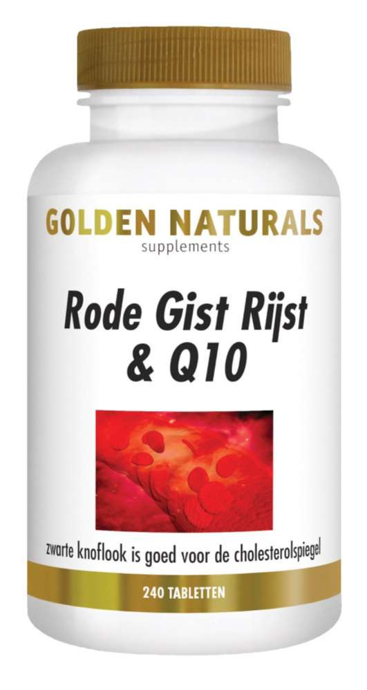 Rode gist rijst is gefermenteerde witte rijst met de schimmel Monascus purpureus. Golden Naturals Rode Gistrijst & Q10 Tabletten (240 stuks) is een voedingssupplement op basis van rode rijst en zwarte knoflook.