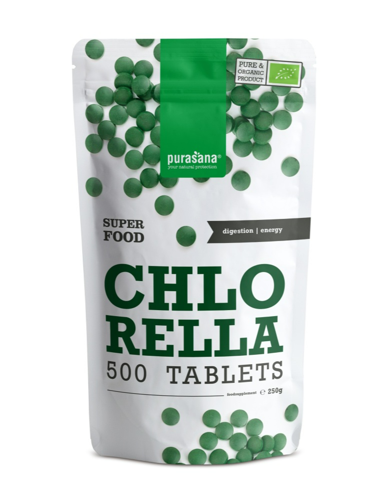 Chlorella is een eencellige zoetwateralg die behoort tot de groenwieren en rijk is aan chlorofyl (bladgroen). Purasana Biologische Chlorella Tabletten (500 stuks) is een voedingssupplement op basis van chlorella.