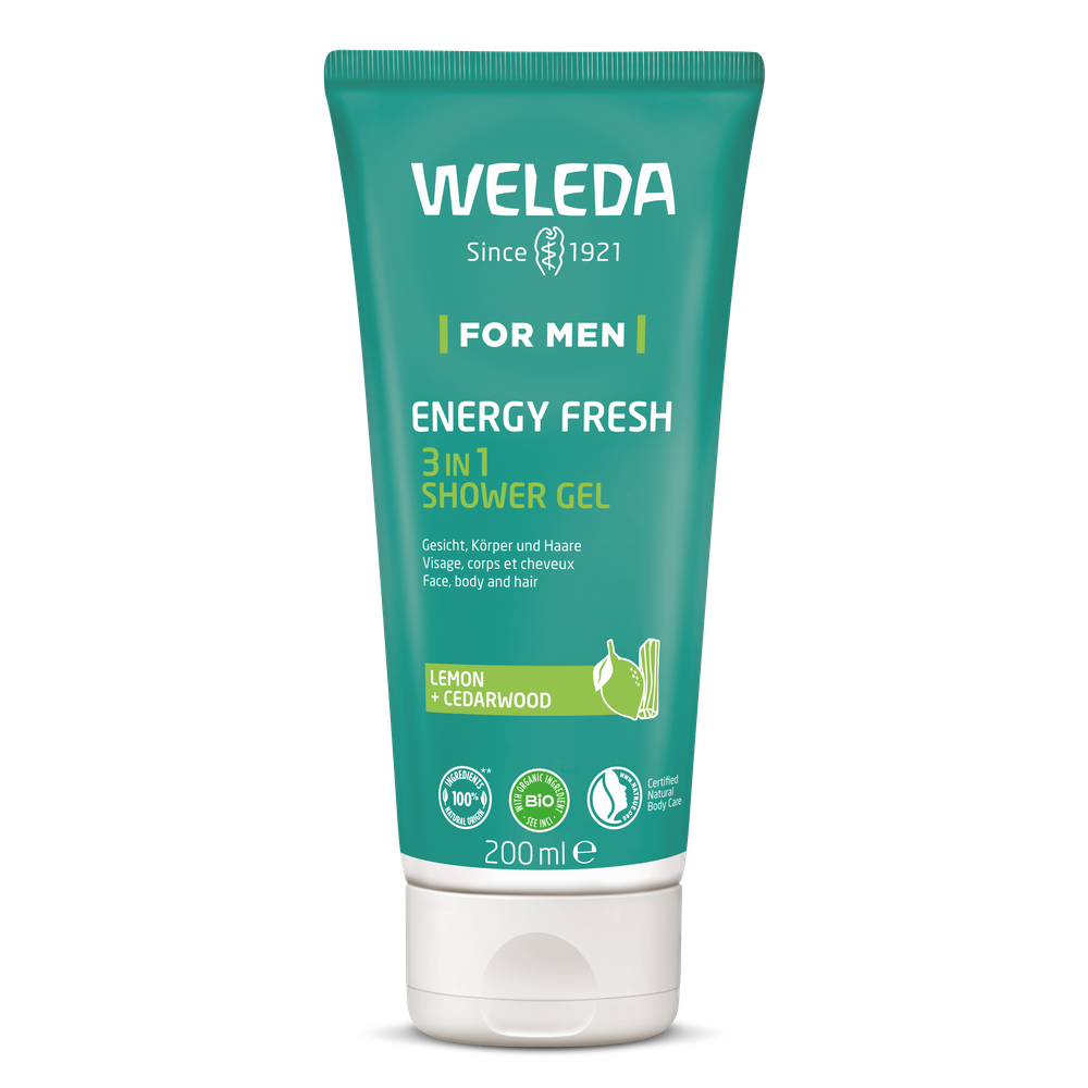 Geeft u uzelf een frisse start van de dag en kies voor deze douchegel met een energieke geur van citroen en cederhout. Weleda Men 3in1 Energy Fresh Douchegel is een douchegel voor mannen.