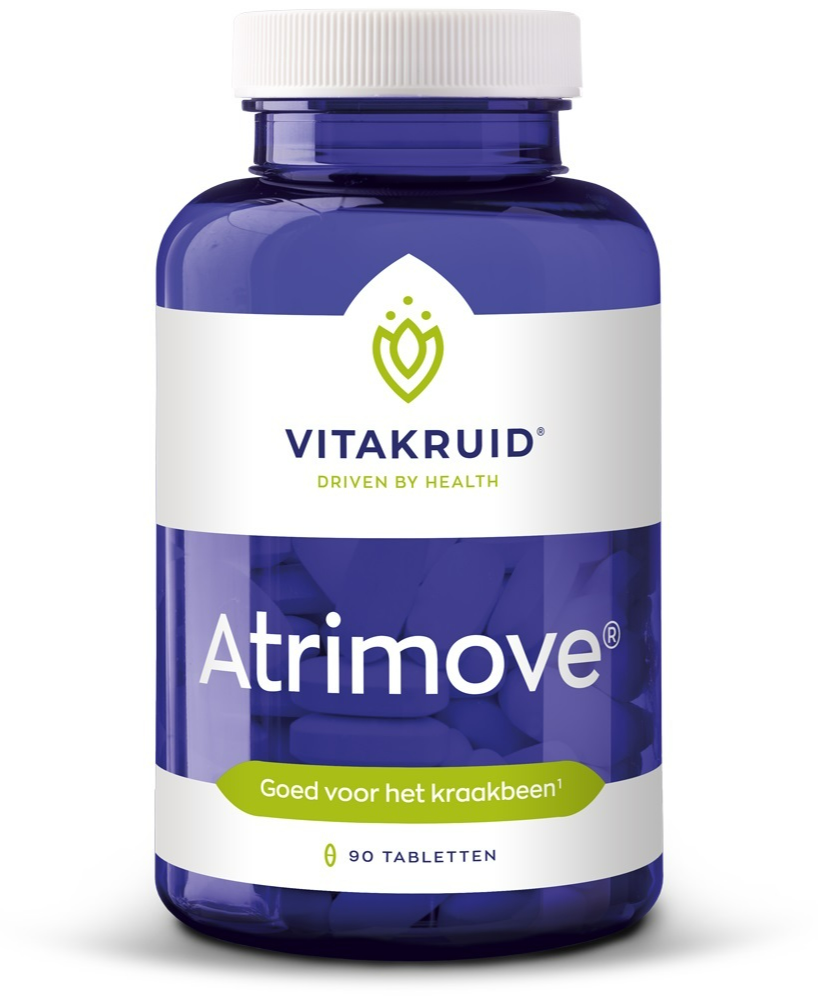 Het supplement is verrijkt met vitaminen en mineralen.Vitakruid Atrimove Tabletten:Vitamine D, calcium en magnesium zijn goed voor de spieren.