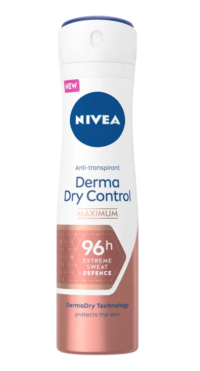 Dankzij de DermaDry Technologie biedt de formule een milde en gladde huidervaring zonder irritatie. Nivea Derma Dry Control Anti-transpirant Spray biedt voor 96 uur bescherming tegen overmatige transpiratie en voorkomt ongewenste geurtjes.