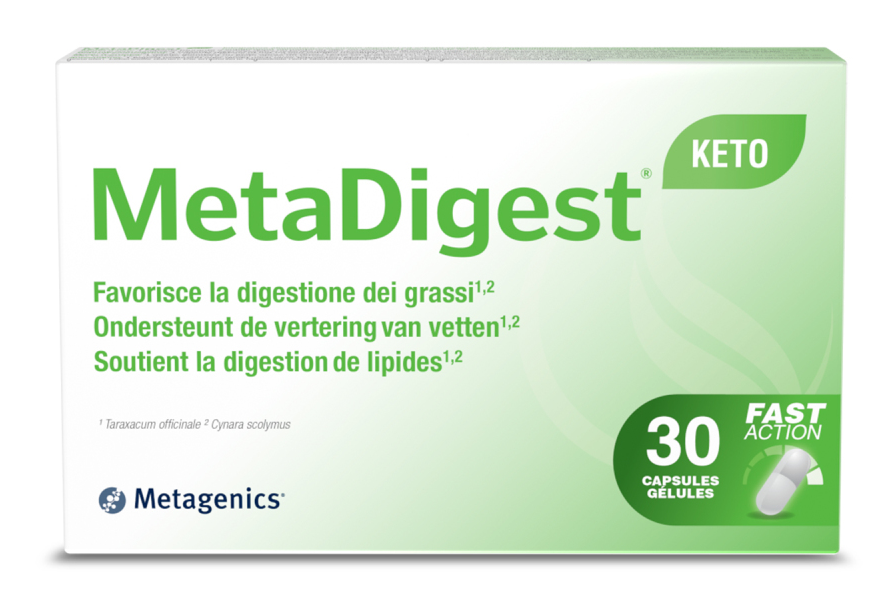 Metagenics MetaDigest Keto Capsules bevat een combinatie van extracten uit planten, sojalecithine, lipase, L-glycine en betaïne HCL en is ontworpen om de functies van de galblaas en de lever te ondersteunen.