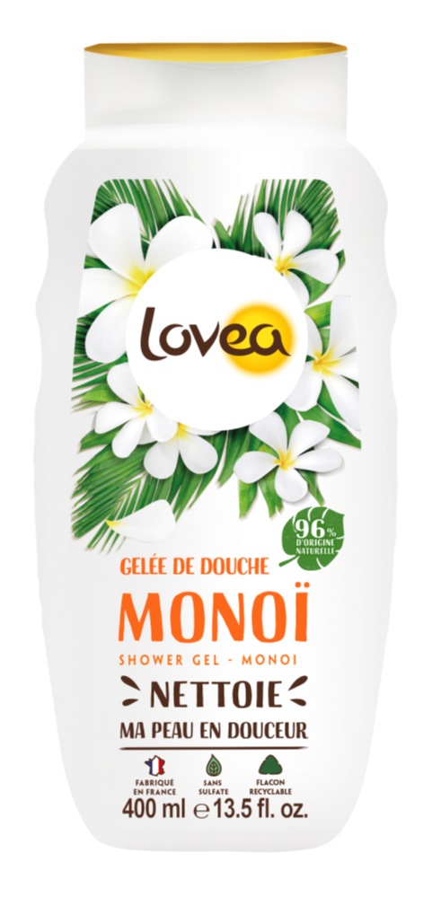 Lovea Douchegel Monoi is een verfrissende en verzorgende douchegel met de heerlijke geur van Monoi.