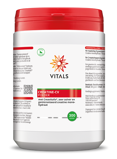 Vitals Creatine-CV Poeder (300 gram) bestaat uit een gemicroniseerde vorm van creatine.