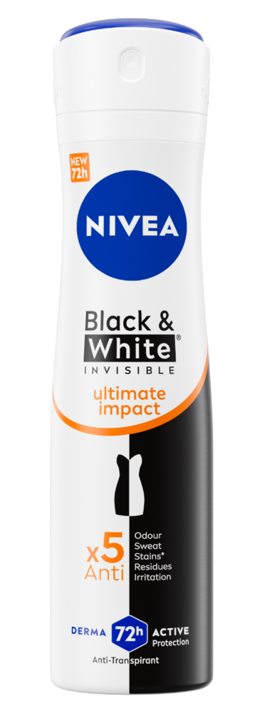 Nivea Black & White Invisible Ultimate Impact Deodorant Spray is uw oplossing voor het vermijden van ongewenste vlekken op uw kleding.