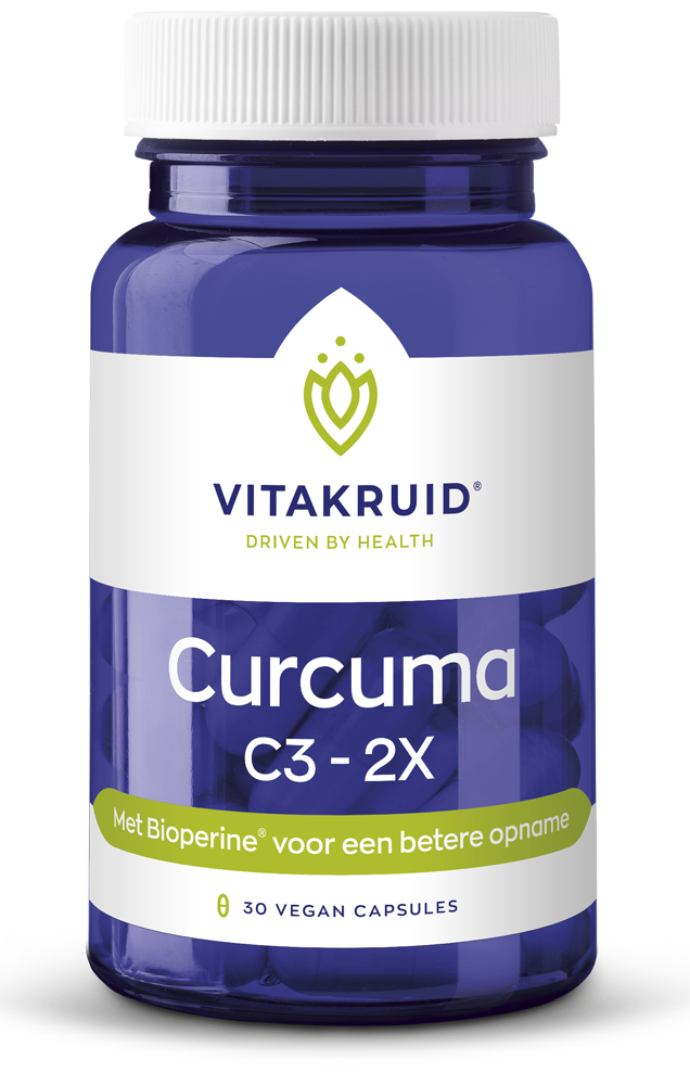Vitakruid Curcuma C3-2X Capsules bevat kurkuma-extract en Zwarte peper extract (Bioperine®, 95-98%).Vitakruid Curcuma C3-2X Capsules:Kurkuma is een antioxidant en ondersteunt het immuunsysteem*Kurkuma ondersteunt de spijsvertering, stimuleert de eetlust en is goed voor de.