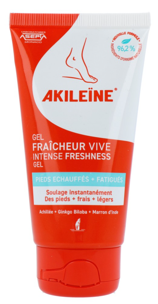 Akileine Intense Freshness Gel (50 ml) biedt een dubbele werking die zowel kalmeert als verfrist, en zorgt direct voor verlichting van vermoeide en oververhitte voeten.