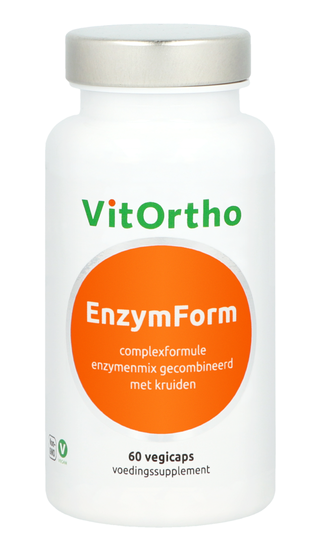 VitOrtho EnzymForm Vegicaps is een hoogwaardig voedingssupplement met een breed spectrum enzymencomplex, aangevuld met zorgvuldig geselecteerde kruiden.