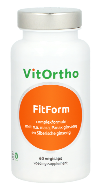 VitOrtho FitForm Vegicaps is een voedingssupplement met een complexformule die een unieke combinatie van maca, Panax ginseng en Siberische ginseng bevat.