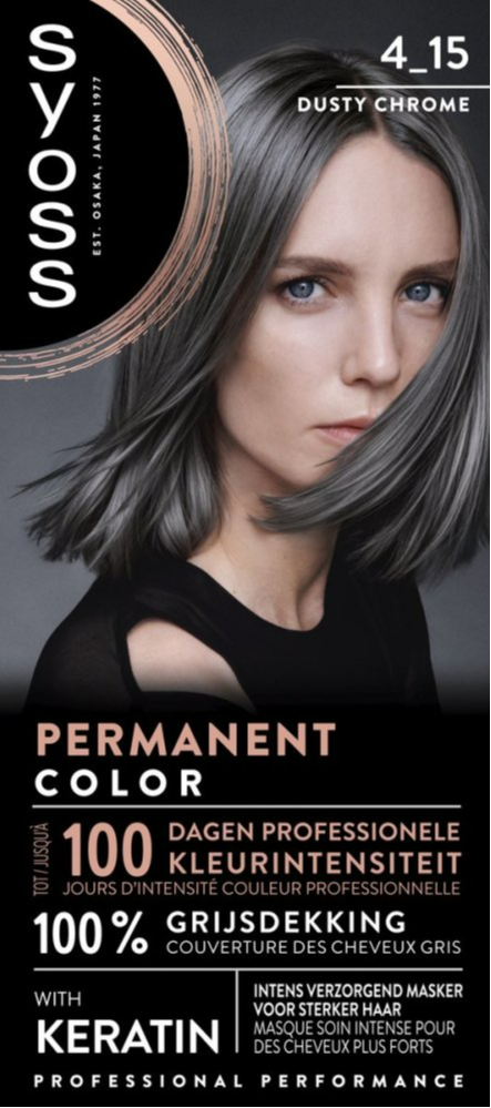 Met deze permanente haarkleuring van SYOSS creëert u eenvoudig een unieke look die gegarandeerd de aandacht zal trekken. Syoss Color 4-15 Dusty Chrome (1st) is dé perfecte keuze voor wie op zoek is naar een moderne en trendy zilveren haarkleur.