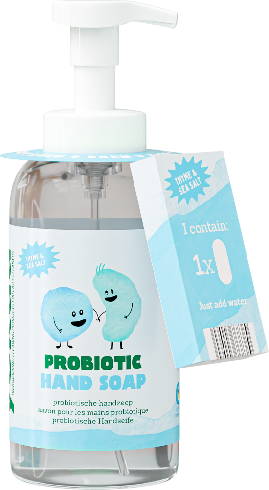 Yokuu Handzeep Thyme & Sea Salt Starterkit (1st) is een probiotische handzeep en bevat goede bacteriën die op natuurlijke wijze vuil en onzuiverheden afbreken, terwijl de huid gehydrateerd blijft.