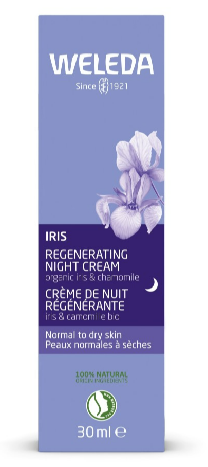 Deze rijke formule met biologische iriswortel en amandelolie ondersteunt het natuurlijke regeneratieproces terwijl de huid slaapt. Weleda Iris Regenererende Nachtcrème (30ml) is een rijke crème met extract van biologische iriswortel en amandelolie.