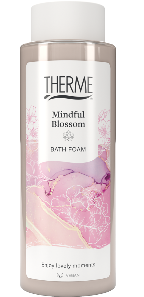 Therme Mindful Blossom Bath Foam (500ml) omhult u met rijk, weldadig schuim en zorgt voor een ultiem moment van ontspanning.