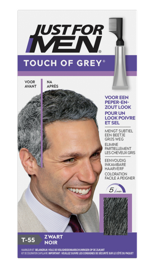 Just For Men Touch of Grey T-55 Zwart is de ideale oplossing voor mannen die er graag op hun best uitzien zonder hun karakteristieke grijze haren helemaal te verliezen.
