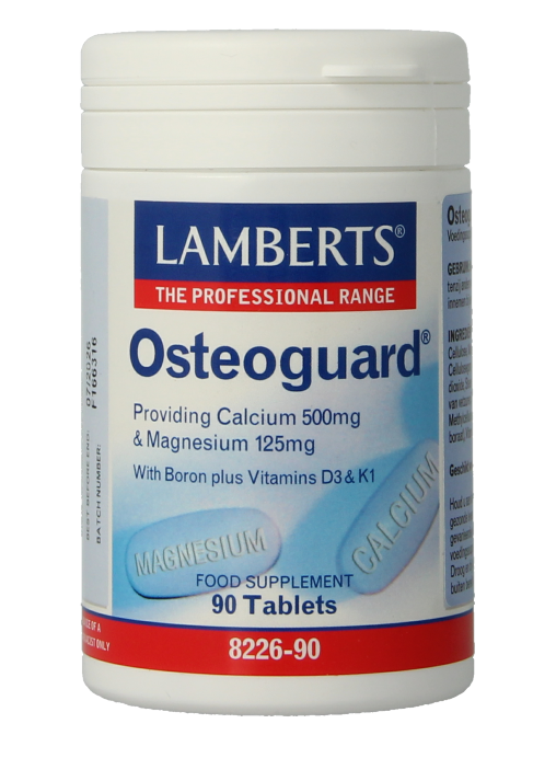 Lamberts Osteoguard Tabletten (90 stuks) combineren calcium en magnesium, twee essentiële mineralen die bijdragen aan het behoud van normale botten en tanden.