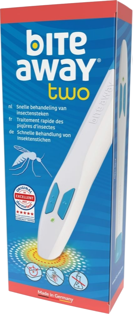 Bite Away Two is een?elektronisch medisch hulpmiddel?dat effectief helpt bij het verminderen van jeuk, pijn en zwelling veroorzaakt door insectenbeten of -steken, zoals van muggen, bijen, wespen en dazen.