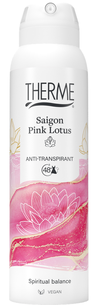 Therme Saigon Pink Lotus Deospray (150ml) is een verfijnde deospray die de subtiele bloemengeur van roze lotus met warme amber en zoete vanille combineert, voor een aangename wellness-ervaring.