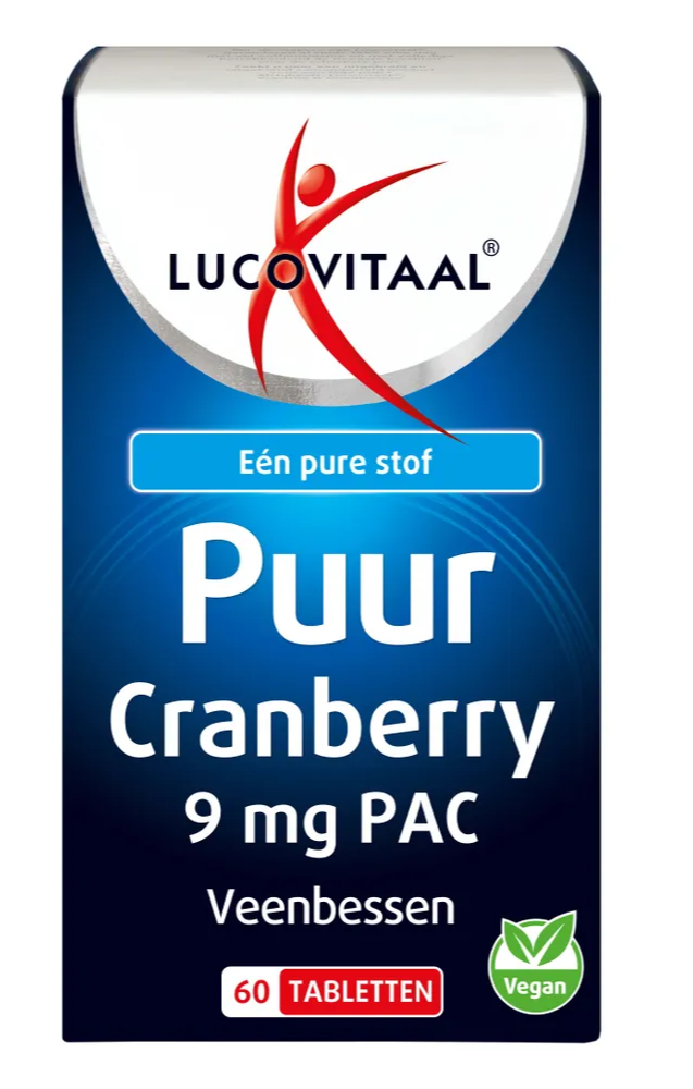 Lucovitaal Puur Cranberry 9 mg PAC Tabletten (60 stuks) is een voedingssupplement en bevat veenbessenextract dat gestandaardiseerd is op 9 mg Proanthocyanidinen (PAC's).