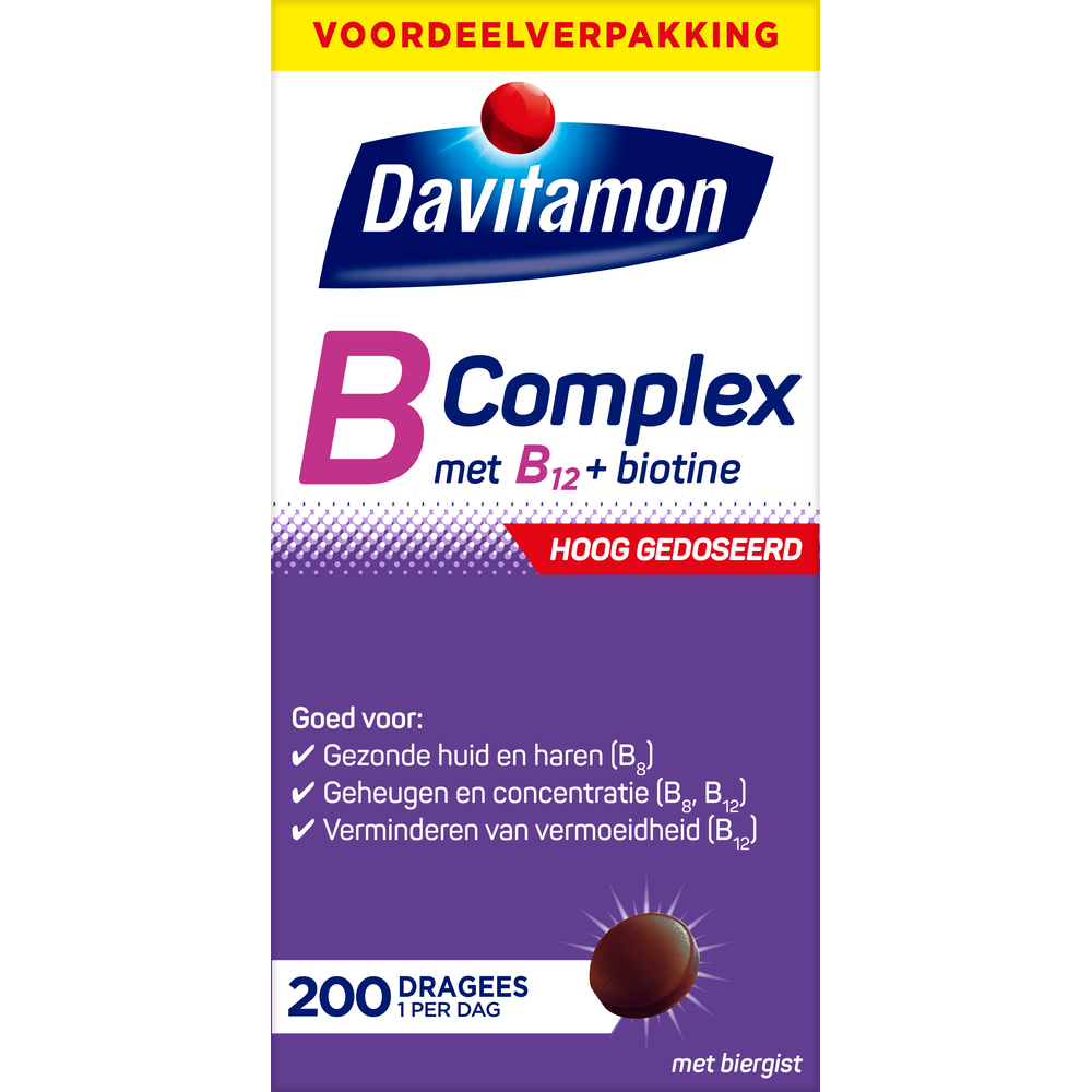 Davitamon B-Complex Forte Dragees is een krachtige en complete formule met biergist, dat van nature rijk is aan verschillende vitamines uit het B-complex.