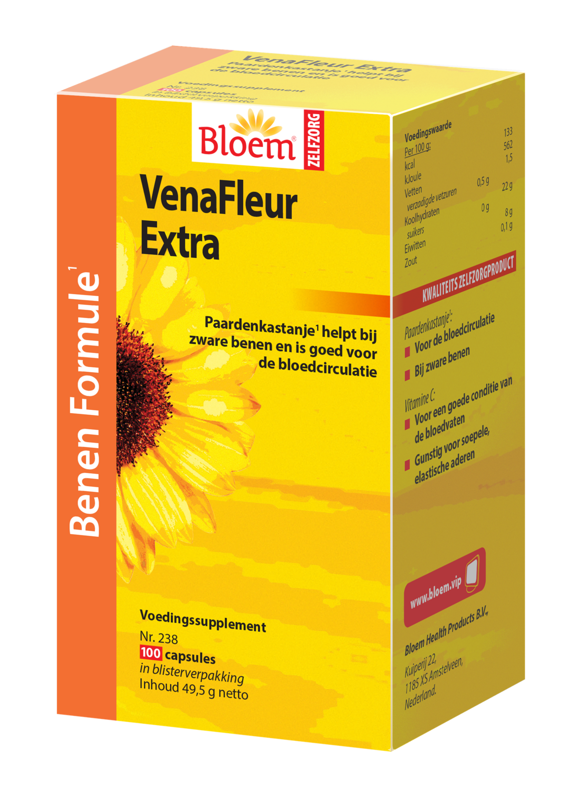 Het is een voedingssupplement dat naast een gestandaardiseerd druivenpit extract, tevens vitamines, mineralen en kruiden bevat. Bloem VenaFleur Capsules verlicht vermoeide benen en bevordert een gezonde bloedcirculatie.