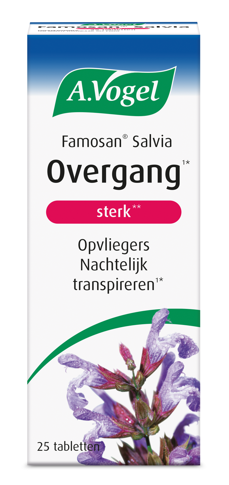 A.Vogel Famosan Salvia Overgang Sterk is een zuiver en 100% natuurlijk product dat specifiek helpt overgang symptomen, zoals opvliegers, zweten en nachtzweten (nachtelijk transpireren)*.