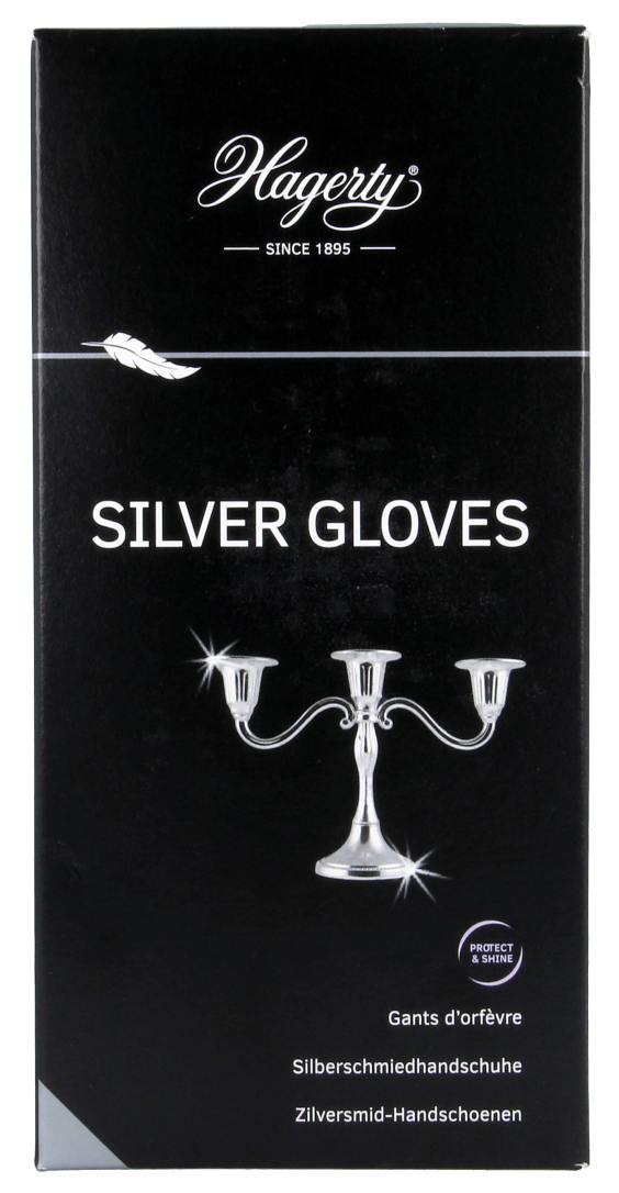 Hagerty Silver Gloves zijn gemaakt van een zachte stof die reinigt en polijst en die het zilverwerk tegen aanslag beschermt. Hagerty Silver Gloves zijn geïmpregneerde handschoenen voor reiniging van zilverwerk.