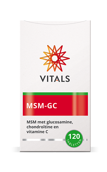 OptiMSM® is de meest zuivere vorm van MSM. Vitals MSM-GC Tabletten is een voedingssupplement op basis van MSM (OptiMSM®), glucosamine (Glucosagreen®), chondroïtine (ChondroPure®) en vitamine C (Ester-C®).