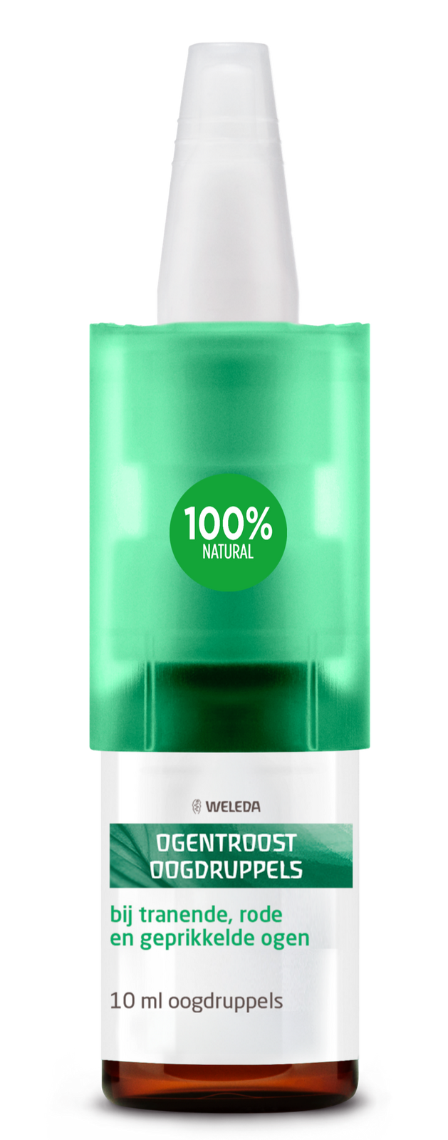 Weleda Ogentroost Druppels verzachten, verzorgen en verfrissen bij zowel tranende, rode of geprikkelde ogen veroorzaakt door bijvoorbeeld pollen, vuiltjes, zon, wind en chloorwater.