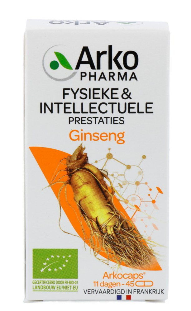 Arkocaps Ginseng Capsules is een voedingssupplement die per capsule 390 mg poeder van de wortel van de Panax Ginseng bevat.