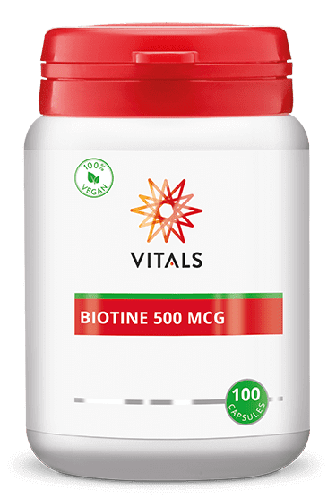 Vitals Biotine 500mcg is een veganistisch vitaminepreparaat met een hoge dosering vitamine B8 in een zuivere vorm.
