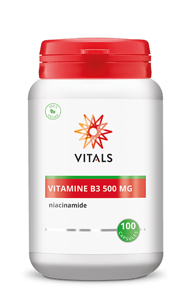 Dit is een vorm waaraan een amidegroep gekoppeld is en veroorzaakt in deze vorm geen 'niacine flush'. Vitals Vitamine B3 500mg Capsules is een voedingssupplement op basis niacinamide.