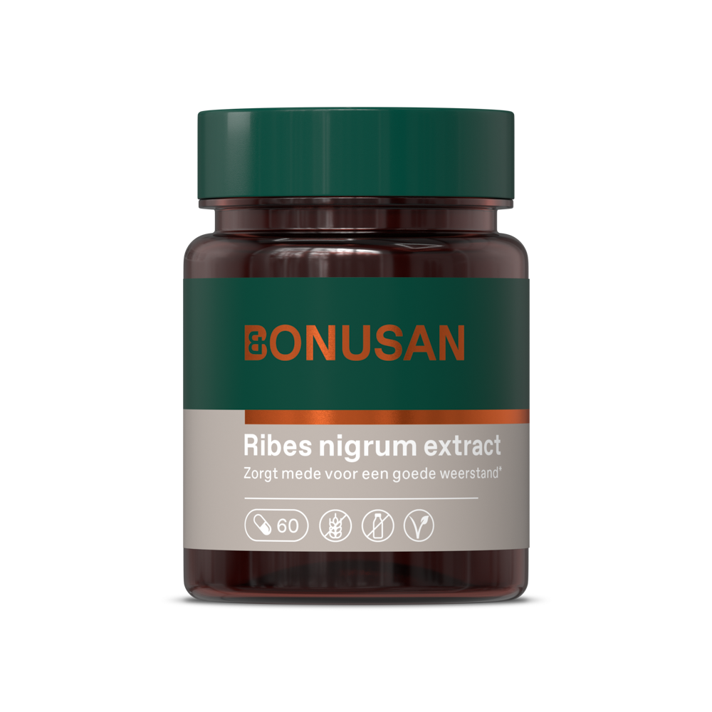 Bonusan Ribes Nigrum Extract Capsules is een kruidenpreparaat op basis van Ribes nigrum (zwarte bes) fructus extract.