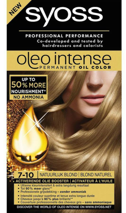 Deze activerende olie-booster zorgt voor een waanzinnige kleurintensiteit met een langdurig resultaat en tevens een complete grijsdekking. Syoss Oleo Intense 7-10 Natuurlijk Blond is de eerste permanente haarkleuring van Syoss die wordt geactiveerd door olie.