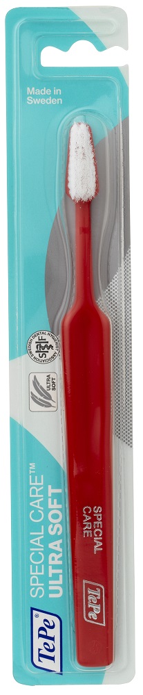 De TePe Special Care Tandenborstel is een speciale tandenborstel die wordt aangeraden bij gevoelig mondslijmvlies, zeer gevoelige tandhalzen, droge mond, na orale chirurgie en na radiotherapie.