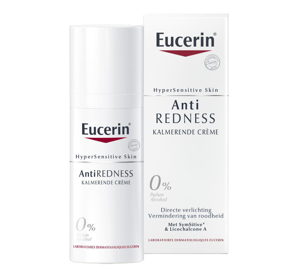 Eucerin Hypersensitive Anti-Redness Crème Kalmerend biedt directe verlichting voor de hypergevoelige huid en helpt roodheid zichtbaar te verminderen.