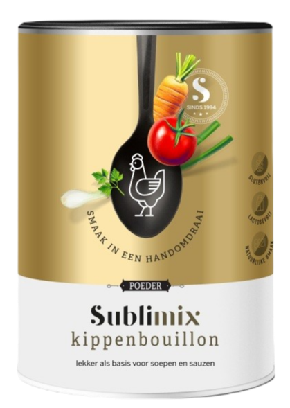 Sublimix Kippenbouillon Poeder (500 gram) is een heerlijke gluten- en lactosevrije, uiterst magere bouillon die perfect is voor het op smaak brengen van uw gerechten.
