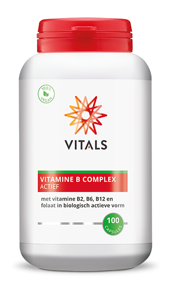 Vitals Vitamine B Complex Actief Capsules bevatten een uitgebalanceerde dosering van alle B-vitaminen en gerelateerde stoffen voor optimale werking.