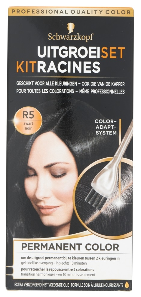 De formule van de Uitgroeisets zorgen voor een prachtig en professioneel resultaat door de uitgroei van gekleurd haar snel en gemakkelijk bij te werken. Schwarzkopf Uitgroeiset R5 Zwart is een van de uitgroeibehandelingen van Schwarzkopf.