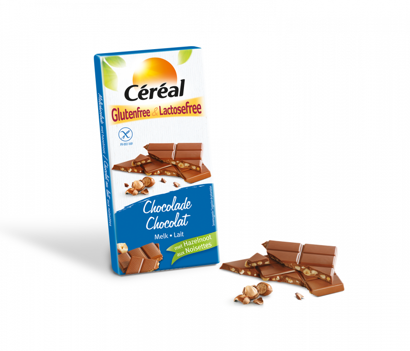 Cereal Glutenvrij & Lactosevrij Chocolade Tablet Hazelnoot is heerlijke melkchocolade met hazelnoot, gegarandeerd zonder gluten en zonder lactose.