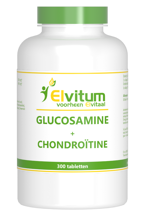Elvitum Glucosamine Chondroïtine bevat glucosamine en chondroïtine in de goede verhouding 5:4.Dosering3 x daags 1.