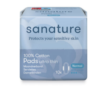 Sanature maandverband heeft een natuurlijke 100% katoenen kern, toplaag en vleugels voor een betere pasvorm en biedt de.