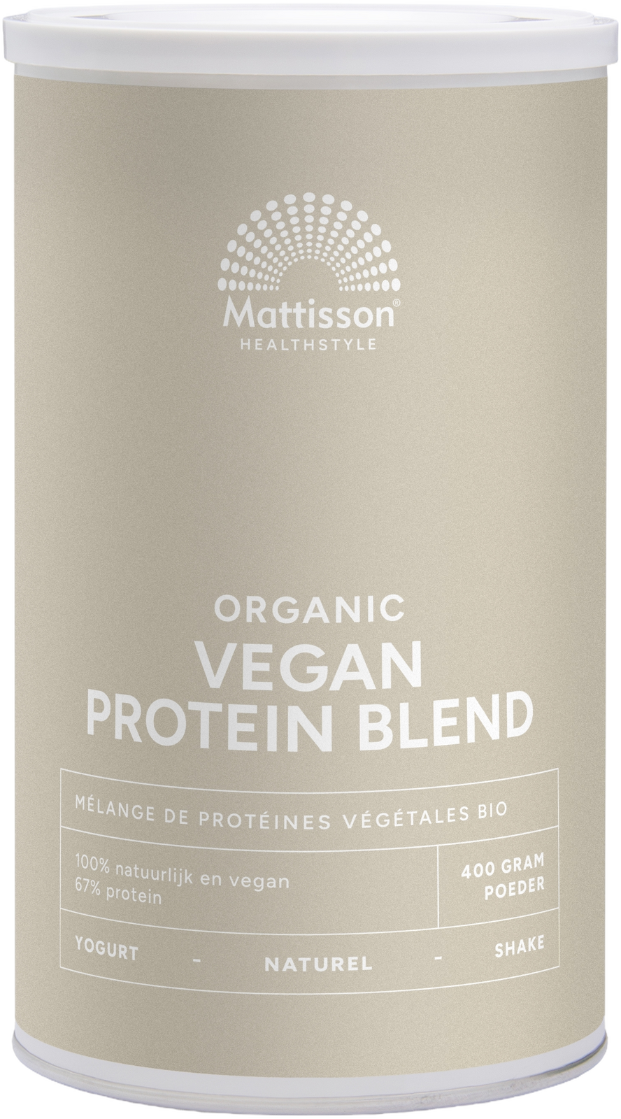 Mattisson HealthStyle Blend Organic Vegan Protein is een 100% biologische en vegan eiwitpoeder en daardoor een goede vervanger van (dierlijke) eiwitbronnen zoals Wei en Soja proteïnen.