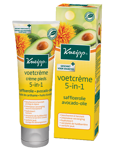 Het beschermt en herstelt de huid en geeft intensieve verzorging. Kneipp Voetcreme 5-in-1 met saffloerolie en avocado-olie is een effectieve alles-in-één verzorging voor de voeten.