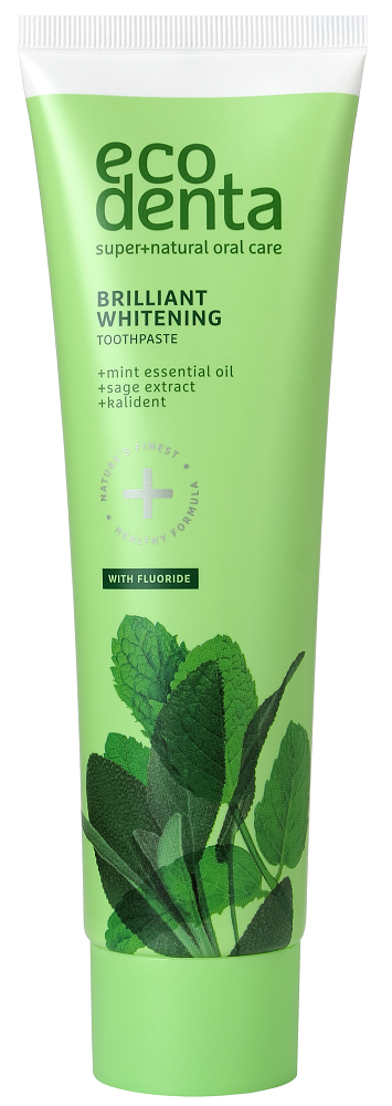 Ecodenta Tandpasta Brilliant Whitening reinigt en bleekt de tanden en beschermt tegen vorming van tandsteen. Ecodenta Tandpasta Brilliant Whitening is een whitening tandpasta met mint olie, salie extract en Kalident.